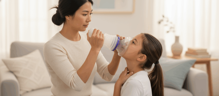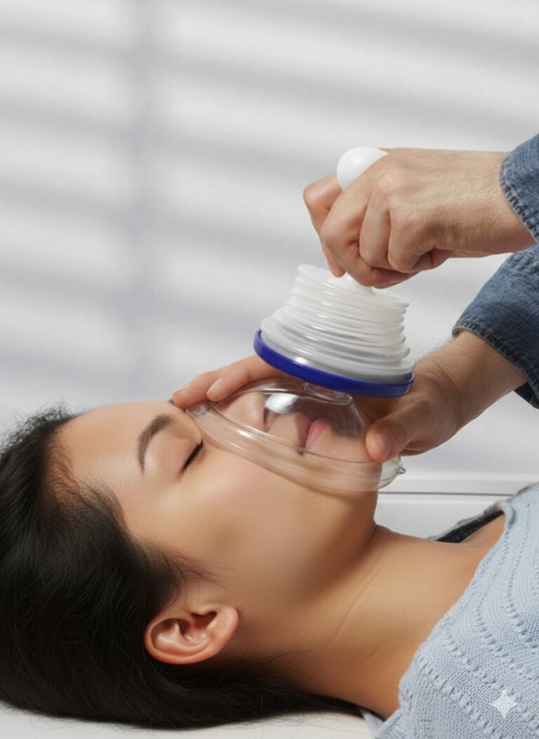 1️⃣ วางหน้ากากบนปากและจมูกของผู้ที่สำลัก ให้แนบสนิท