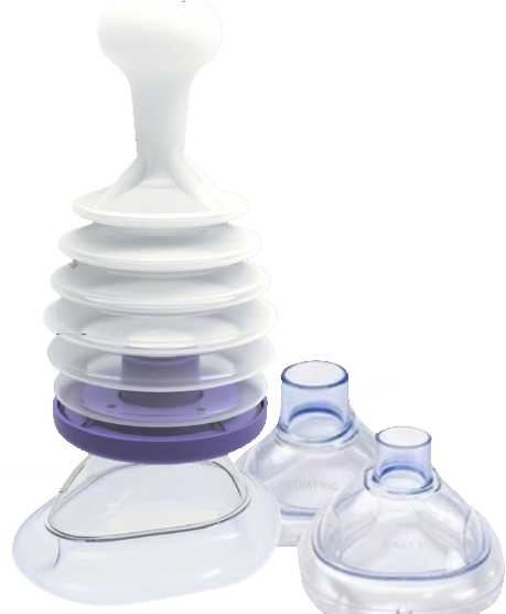 1️⃣ วางหน้ากากบนปากและจมูกของผู้ที่สำลัก ให้แนบสนิท